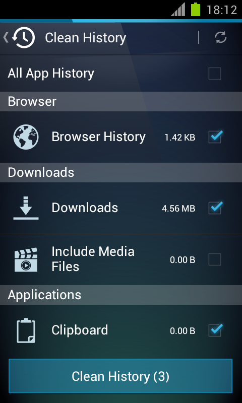 • Media files (pictures, videos and music) are now excluded from the "download history clean" by default. You can manually choose to clean these if you wish to