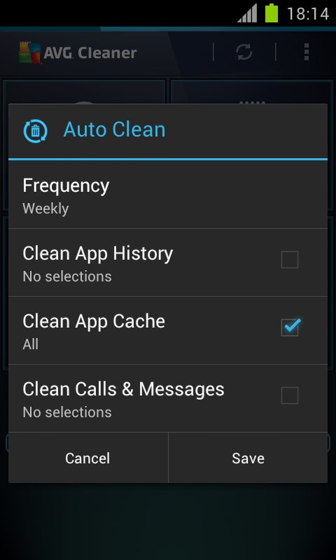 AVG Cleaner lets you quickly erase and clear your browser, call and text histories, as well as identify and remove unwanted cached app data from both the device’s internal memory and the SD card.