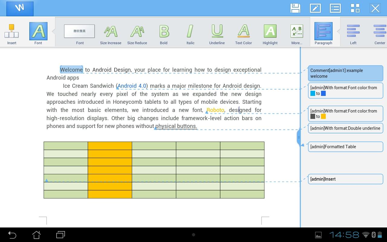 ◇Rich formatting features including bold, italics, underline, font color, alignment, tables, alignment, header, footer, word count, find & replace, full-screen, etc.