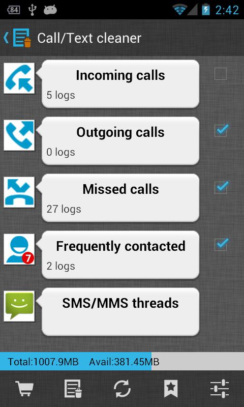 There are four cleaners included in this app. Cache Cleaner, History Cleaner and Call/Text log Cleaner help you to get more free space for the internal phone storage by clearing apps cached files, data files, or search/navigation history records. If you have selected to launch apps by default for some actions. Default Cleaner helps you to clear the default settings.
