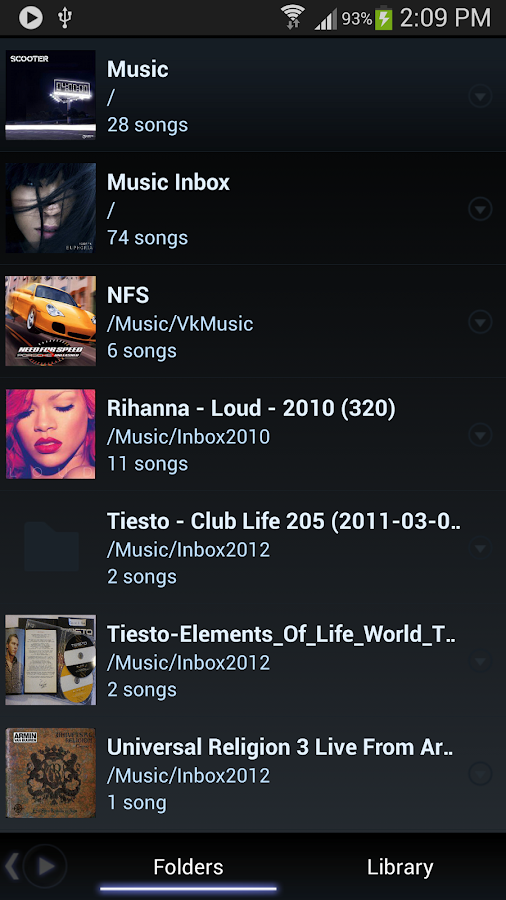 - plays songs from folders and from own library