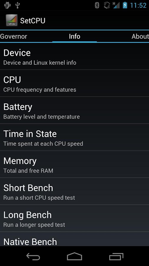 SetCPU is a tool for changing the CPU settings on a rooted Android phone or tablet. SetCPU works with a great variety of Android devices and ROMs, including the HTC One series, Samsung Galaxy series, and Nexus devices. You're under control: SetCPU can improve your performance, save battery, or both!