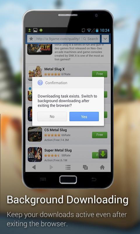 UC Browser for Android provides you fast and smooth Web surfing experience. It's a totally free mobile browser. Adaptable configuration helps you adjust your way of browsing under different network connections, allowing you to reduce data costs and speed up page loading with compression. Android 4.3 is supported in the newest version.