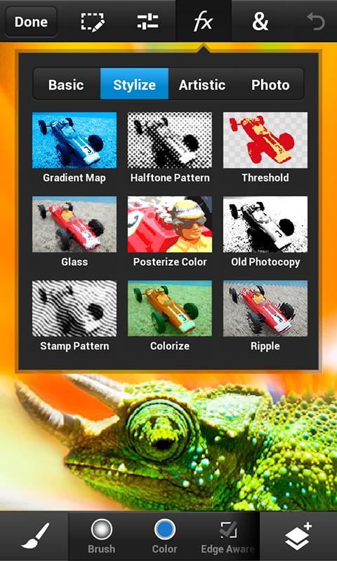 Transform your images with core Photoshop features. Combine images, apply professional effects, and share results with friends and family through Facebook and Twitter — all from the convenience of your phone. Enjoy most of the same features as the tablet version: